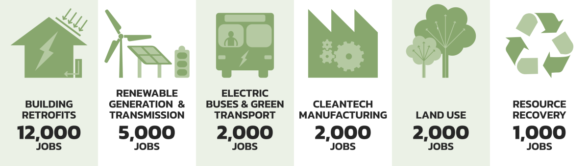 “More than fifty percent of the 24,000 jobs are in two sectors, building and construction and renewable energy and its transmission. The balance will be found in electric buses and green transport, cleantech manufacturing, recycling and the circular economy and land use.”