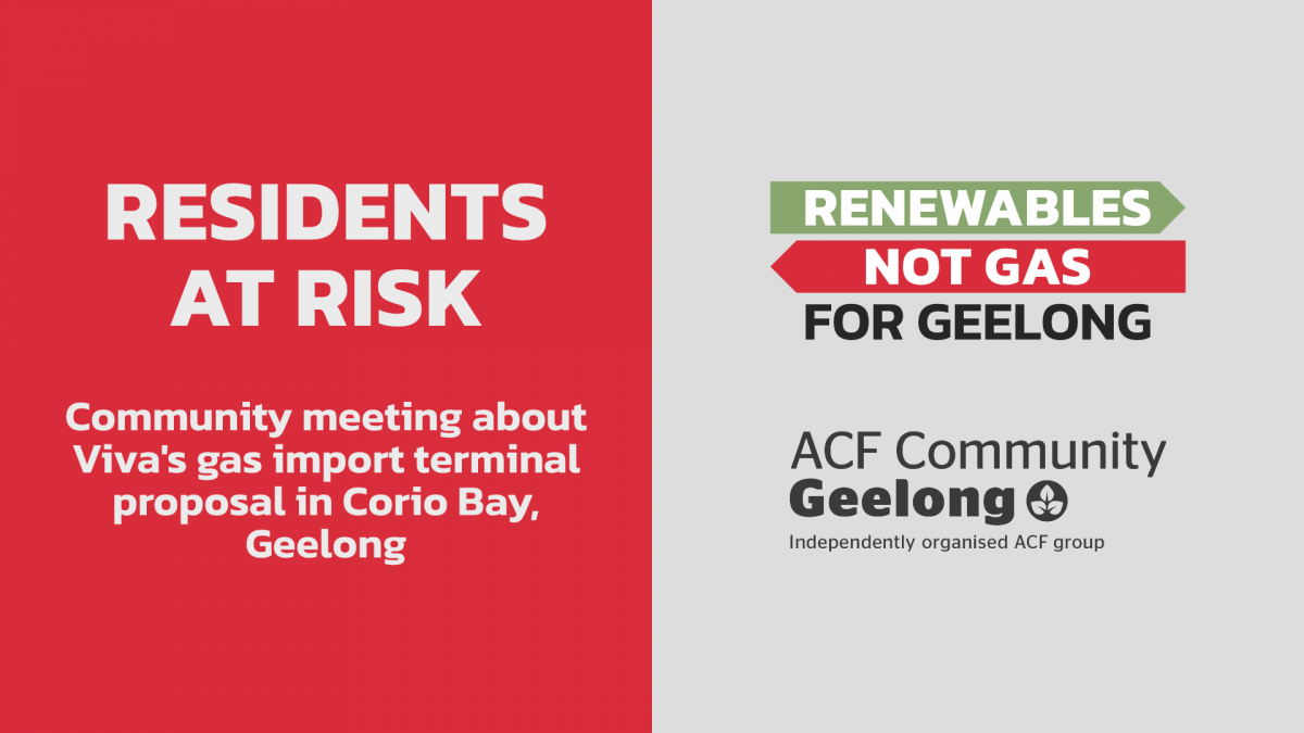 “Viva Energy’s spokesman needs to know that the words “unlikely” (ignition) and “rare” (terror attack) are hardly reassuring to local residents or those in the wider community. There is no 100 percent guarantee against terrorism or human error. Viva Energy’s planned LNG terminal in Corio Bay is an unacceptable risk,” wrote Kate P of North Shore to the Editor of the Geelong Advertiser (October 15, 2021).